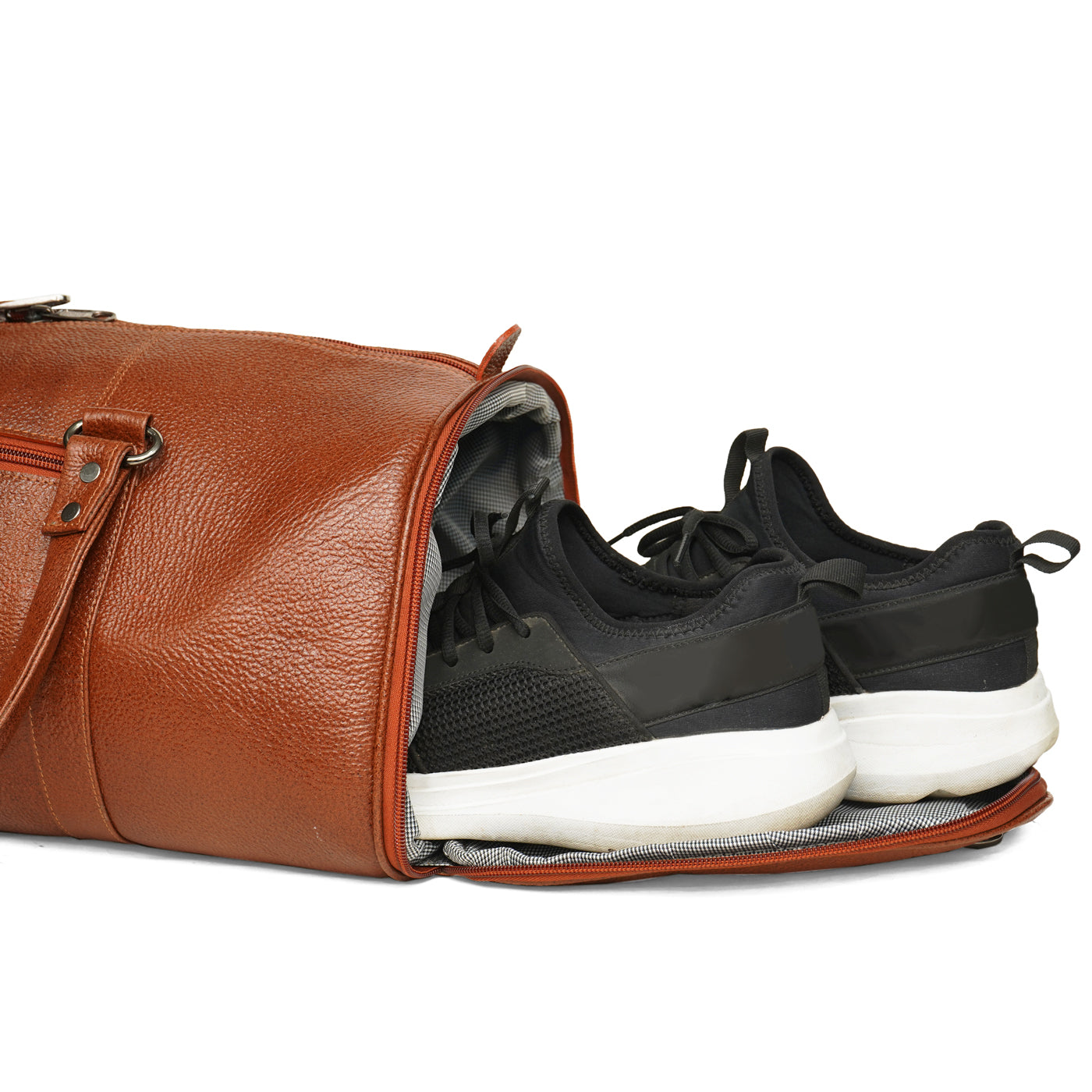 Made by 100% Premium and genuine high quality milled leather, this bag will be your perfect GYM Partner. A beautiful minimalist design and strong build, it is a must-have for any leather loving gentleman. It features a space big front, easy to reach zipper and secured exterior pocket. It has a snap button closure pocket for toiletries and a zipper enclosed pocket for wallet, cards and cash, passport and a big compartment for clothes, shoes.