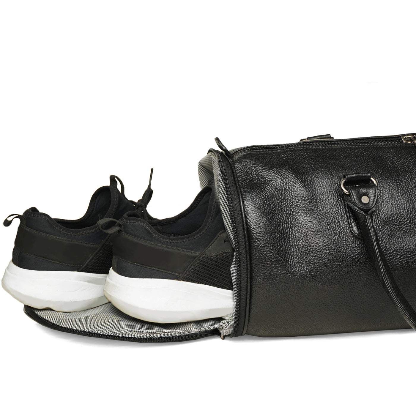 Made by 100% Premium and genuine high quality milled leather, this bag will be your perfect GYM Partner. A beautiful minimalist design and strong build, it is a must-have for any leather loving gentleman. It features a space big front, easy to reach zipper and secured exterior pocket. It has a snap button closure pocket for toiletries and a zipper enclosed pocket for wallet, cards and cash, passport and a big compartment for clothes, shoes.