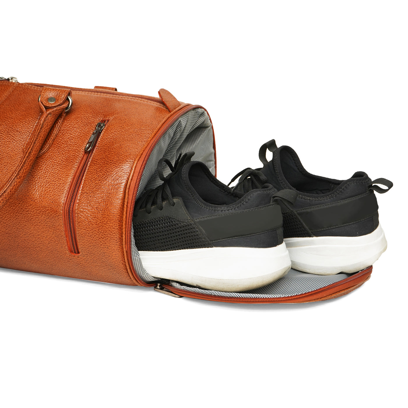 Made by 100% Premium and genuine high quality milled leather, this bag will be your perfect GYM Partner. A beautiful minimalist design and strong build, it is a must-have for any leather loving gentleman. It features a space big front, easy to reach zipper and secured exterior pocket. It has a snap button closure pocket for toiletries and a zipper enclosed pocket for wallet, cards and cash, passport and a big compartment for clothes, shoes.
