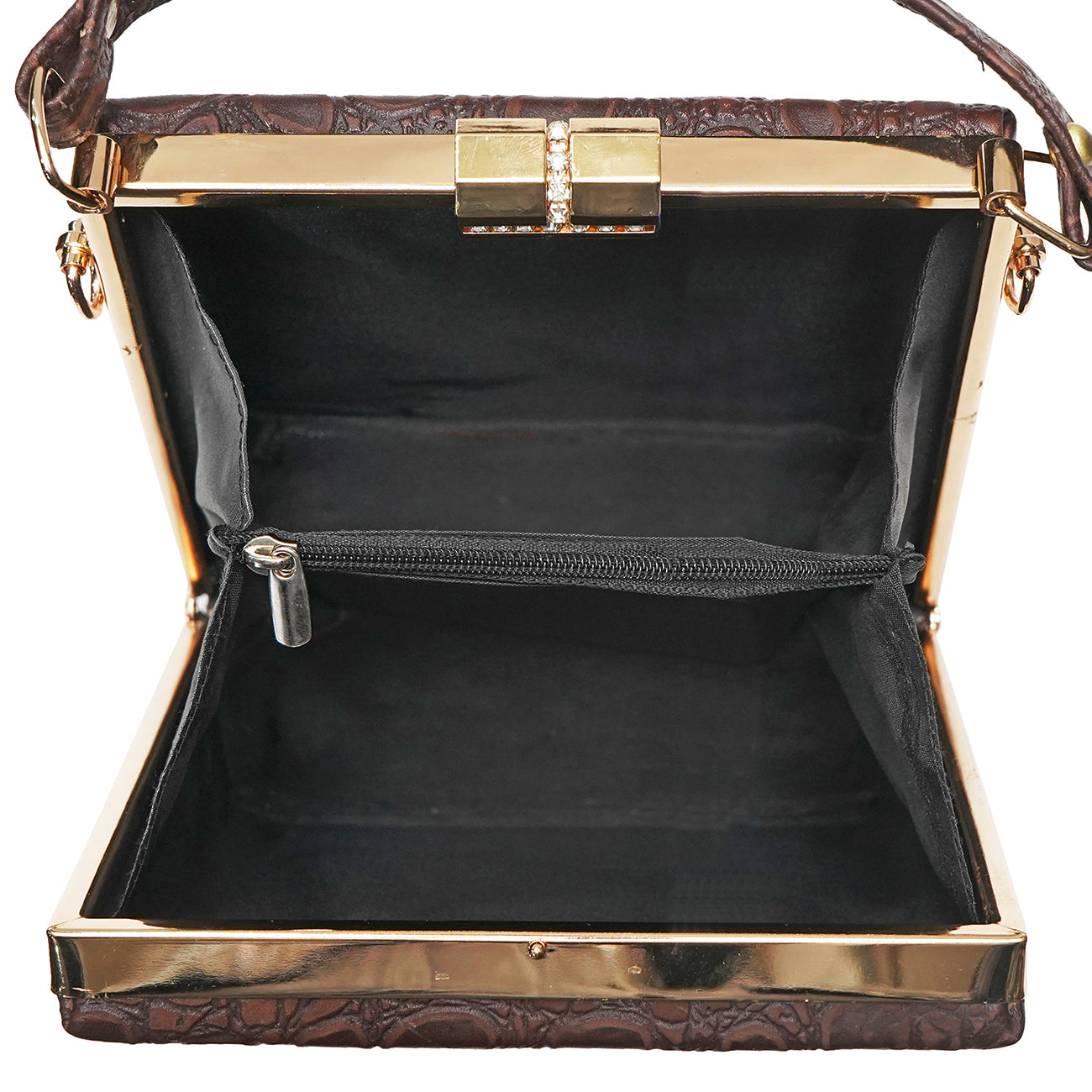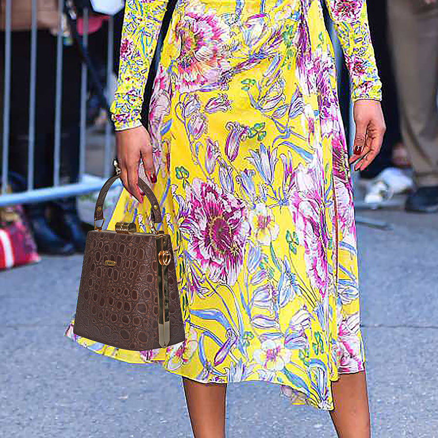 This Stylish and trendy fashion bag consists of 2 spacious Inner compartments with a center chain pocket a handle and a sling strap.