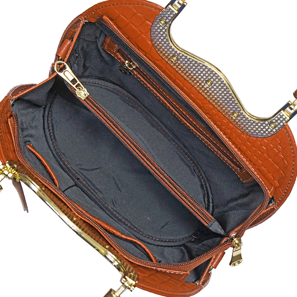 This crossbody bag consists of 2 spacious Inner compartment with a Center divider chain pocket, asecret chain pocket and a slid pocket for your wallet, 2 handles and a sling strap.