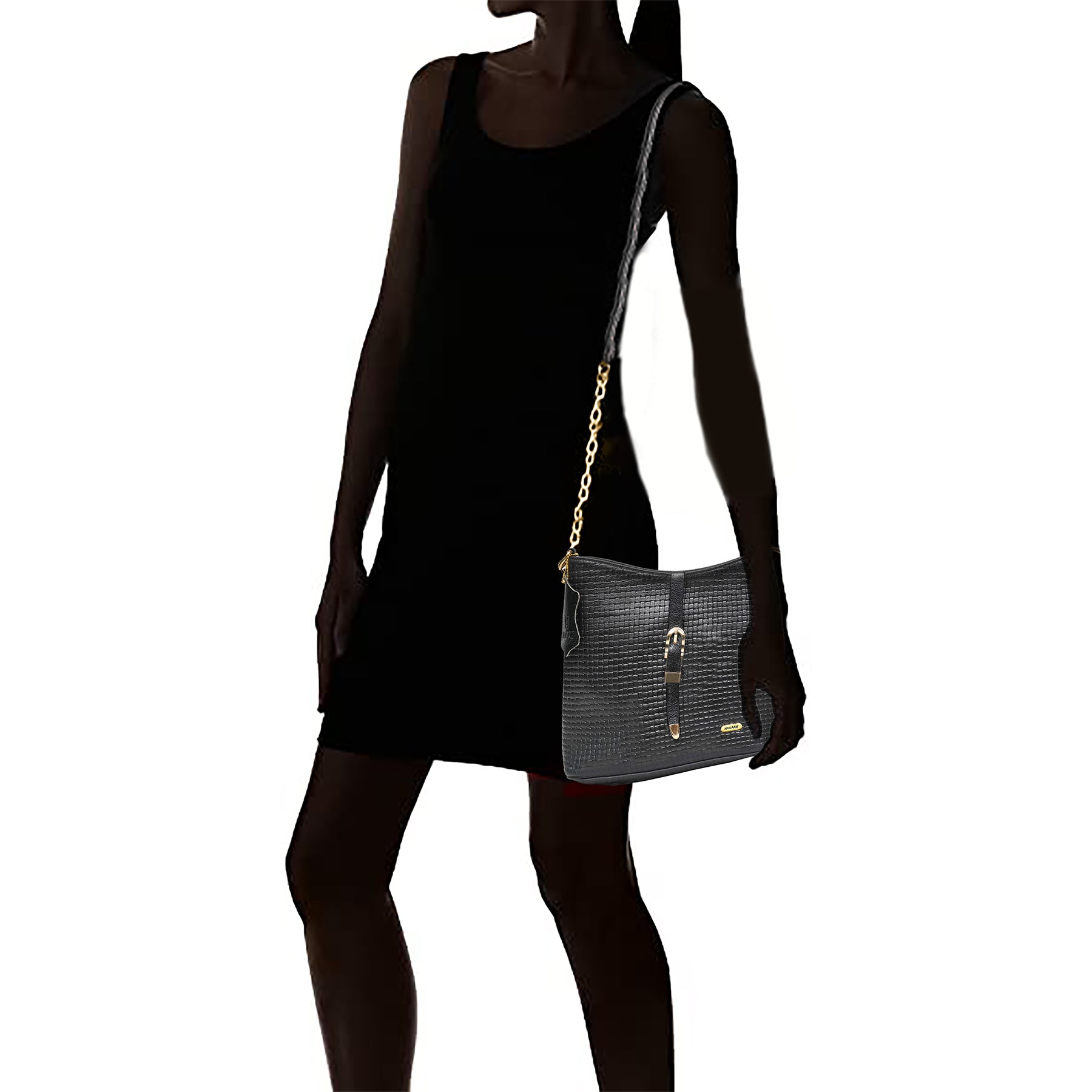 This crossbody sling bag consists of 2 spacious Inner compartment with a secret chain pocket and a slid pocket for your wallet, 1 back chain pocket and a sling strap.