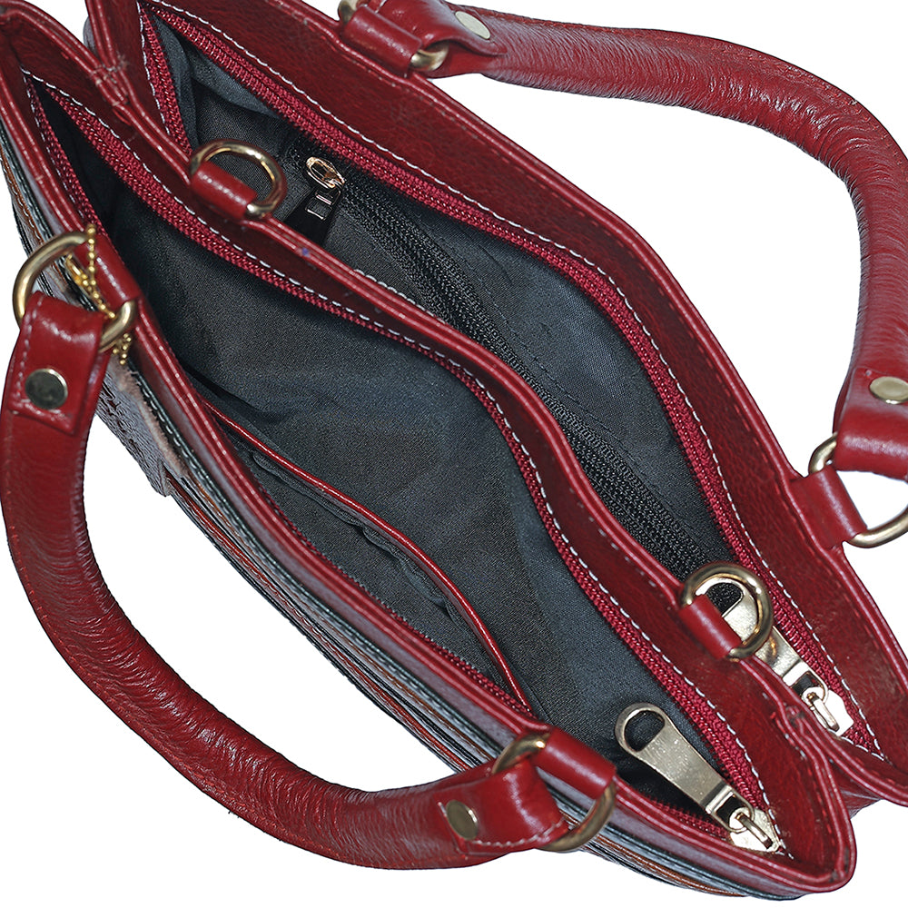 This Mini Tote bag consists of 2 spacious Inner compartment with a secret chain pocket and a slid pocket for your wallet, 1 back chain pocket 2 handles and a sling strap.