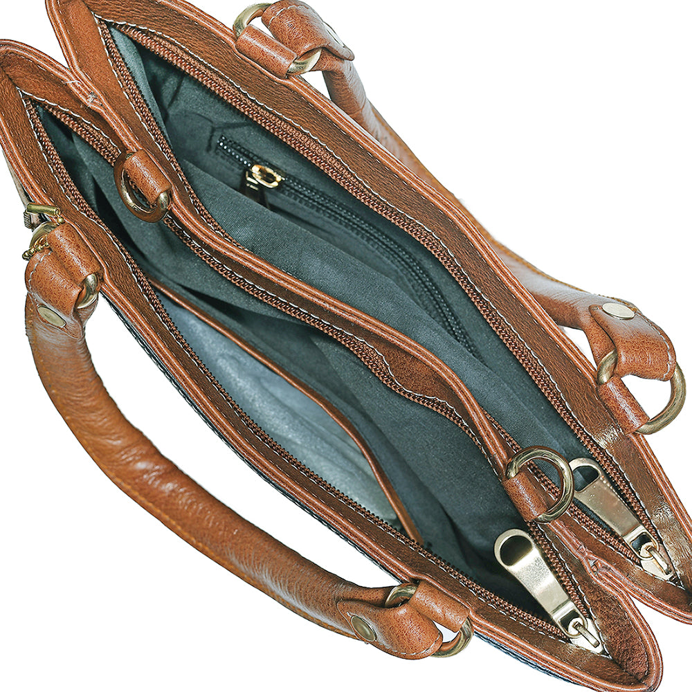 This Mini Tote bag consists of 2 spacious Inner compartment with a secret chain pocket and a slid pocket for your wallet, 1 back chain pocket 2 handles and a sling strap.