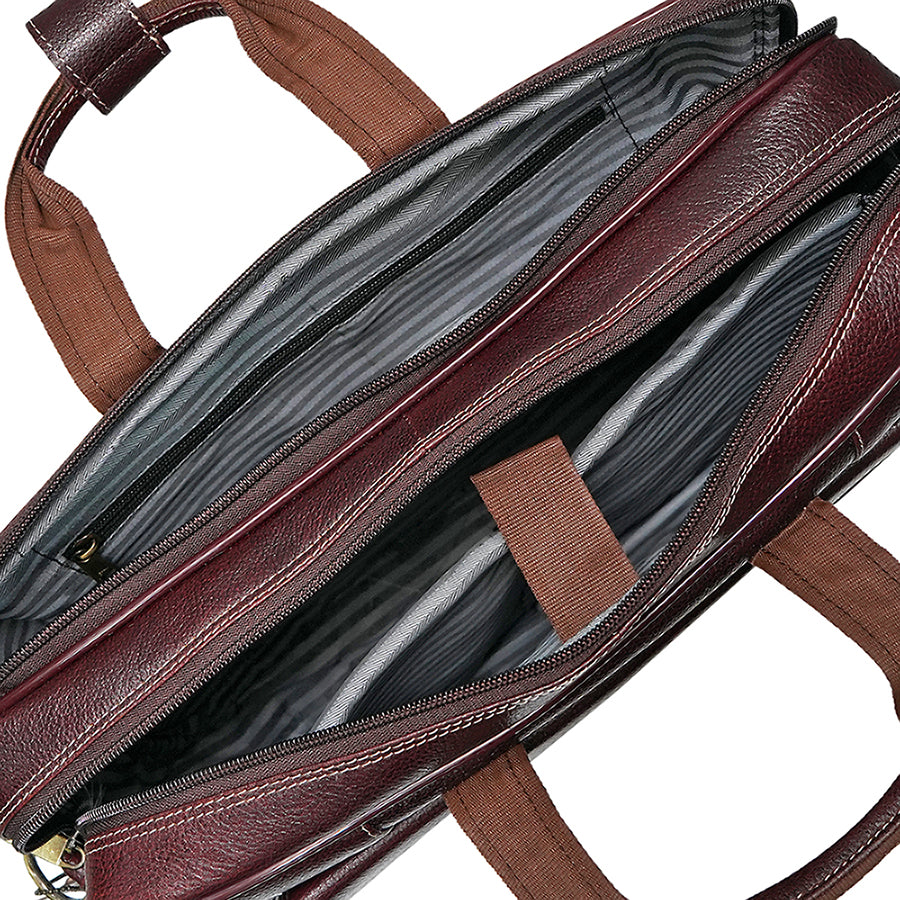 This laptop bag comes with a pocket space extender and consists of 2 main spacious compartments and 1 front compartment, 1 laptop compartment, 1 inside pocket,1 back pocket , 2 handles and 1 detachable and adjustable sling strap.