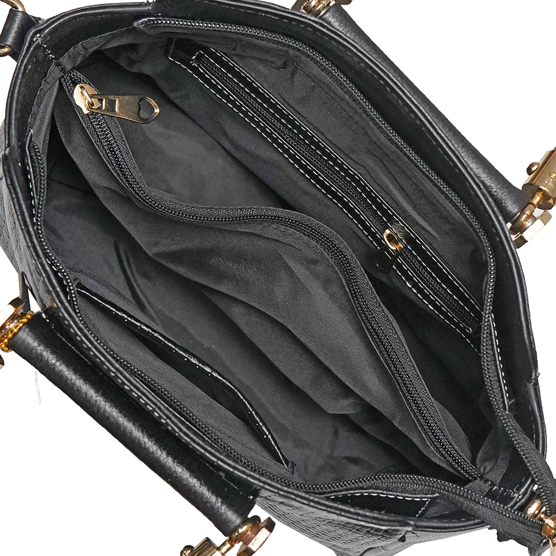 This crossbody bag consists of 2 spacious Inner compartment,with a Center divider chain pocket, a secret chain pocket and a slid pocket for your wallet, 1 back chain pocket, 2 handles and a sling strap.