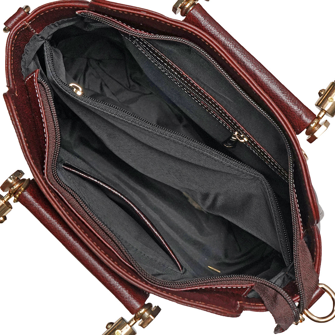This crossbody bag consists of 2 spacious Inner compartment,with a Center divider chain pocket, a secret chain pocket and a slid pocket for your wallet, 1 back chain pocket, 2 handles and a sling strap.