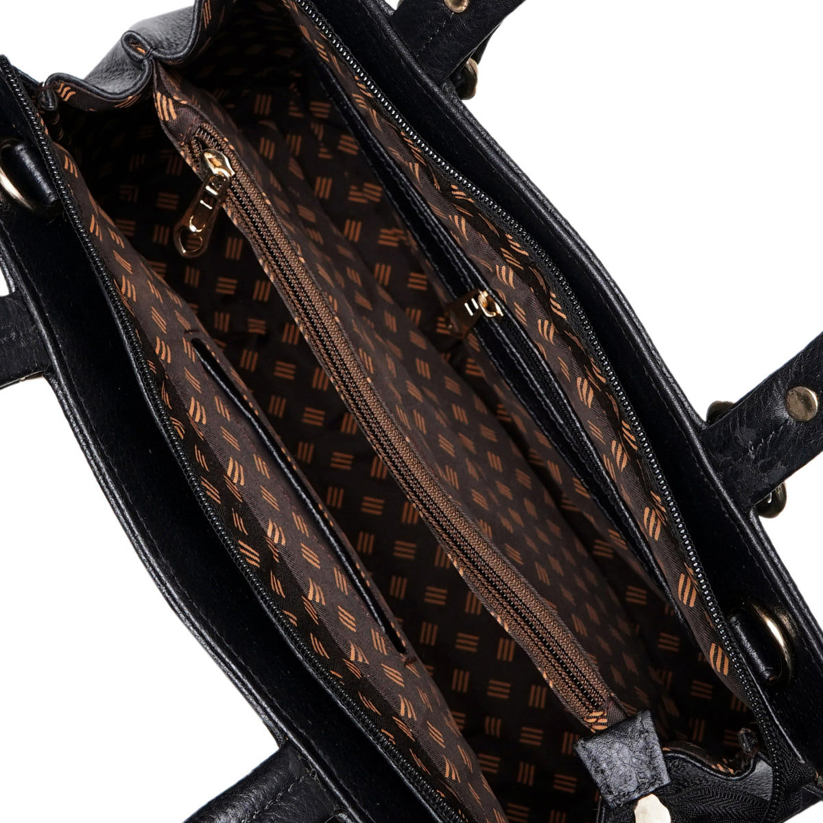 This bag consists of 2 Inner compartments, 1 outer chain pocket, 1 secret chain pocket,1 slip pocket, 1 center divider pocket, 2 twin round handles and a sling strap.