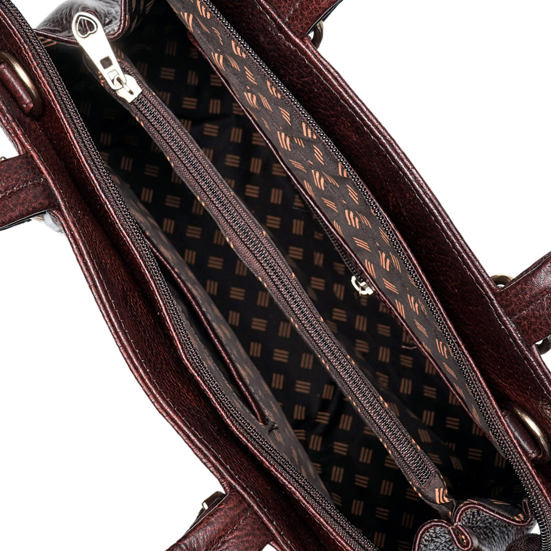 This bag consists of 2 Inner compartments, 1 outer chain pocket, 1 secret chain pocket,1 slip pocket, 1 center divider pocket, 2 twin round handles and a sling strap.