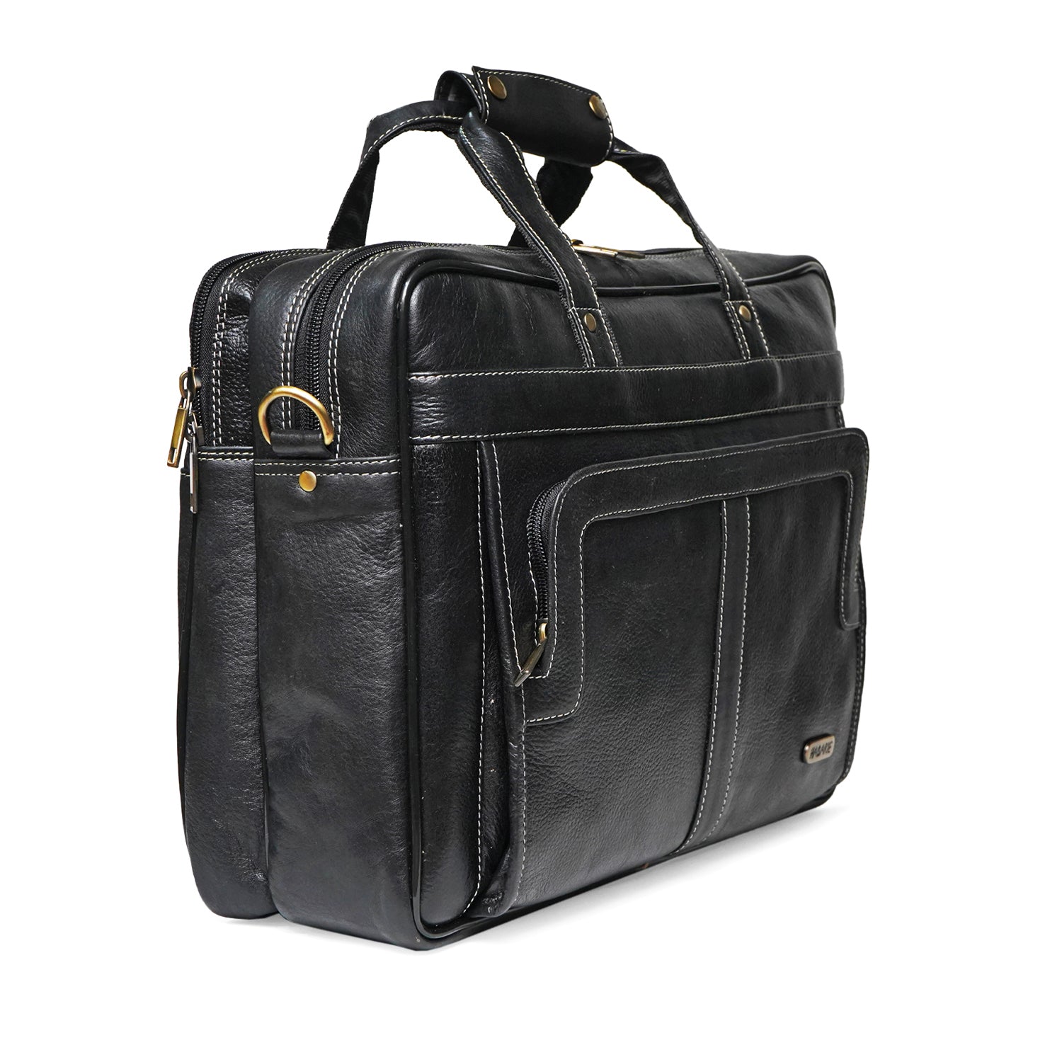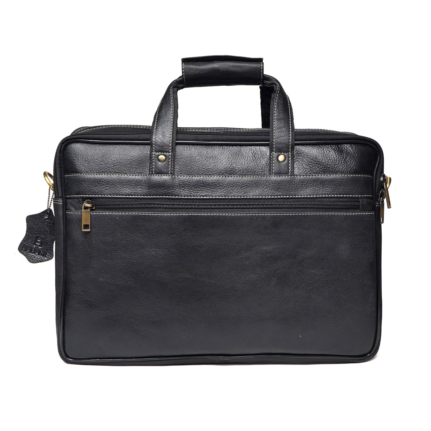 This laptop bag consists of 2 main spacious compartments and 1 front compartment, 1 laptop compartment, 1 inside pocket,1 back pocket, 2 handles and 1 detachable and adjustable sling strap