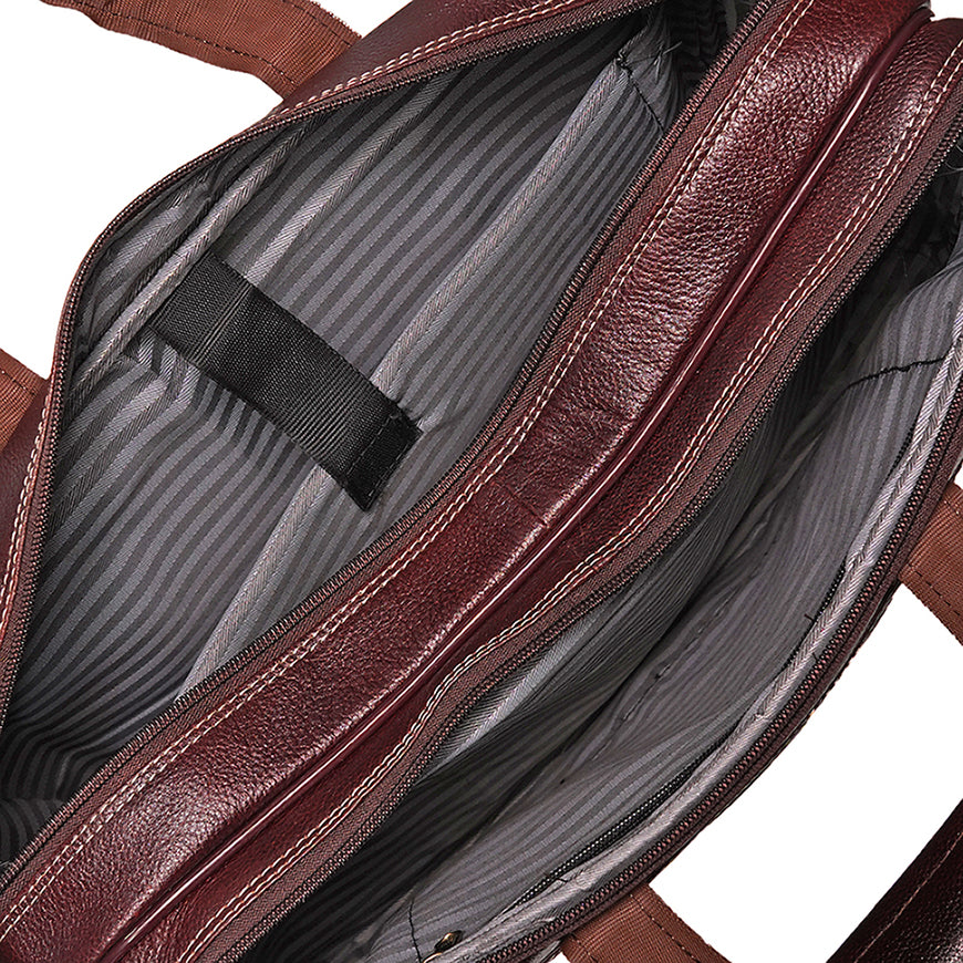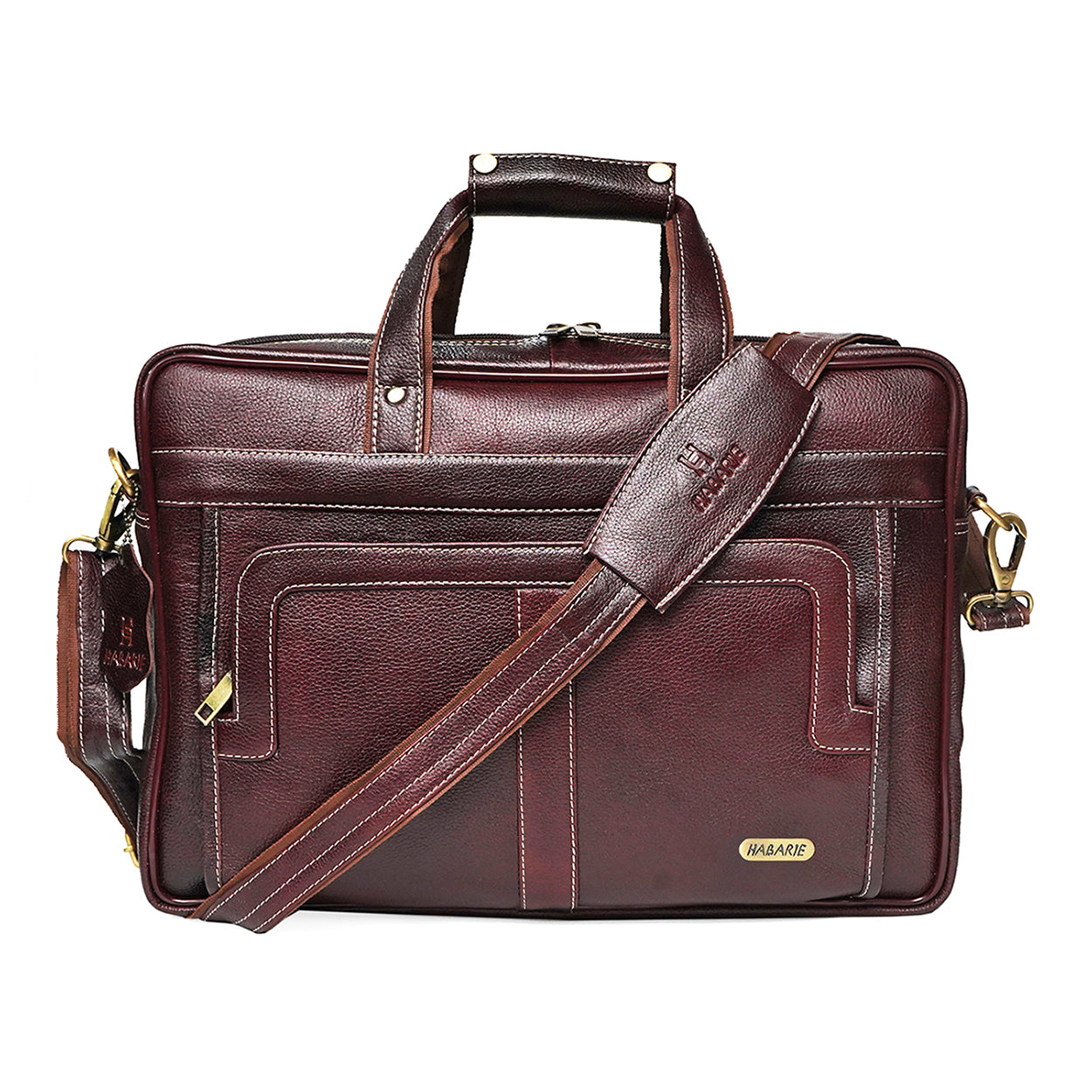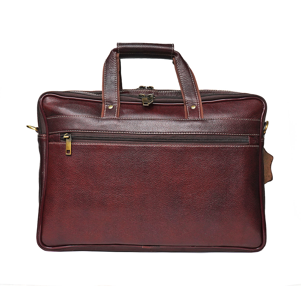 This laptop bag consists of 2 main spacious compartments and 1 front compartment, 1 laptop compartment, 1 inside pocket,1 back pocket, 2 handles and 1 detachable and adjustable sling strap