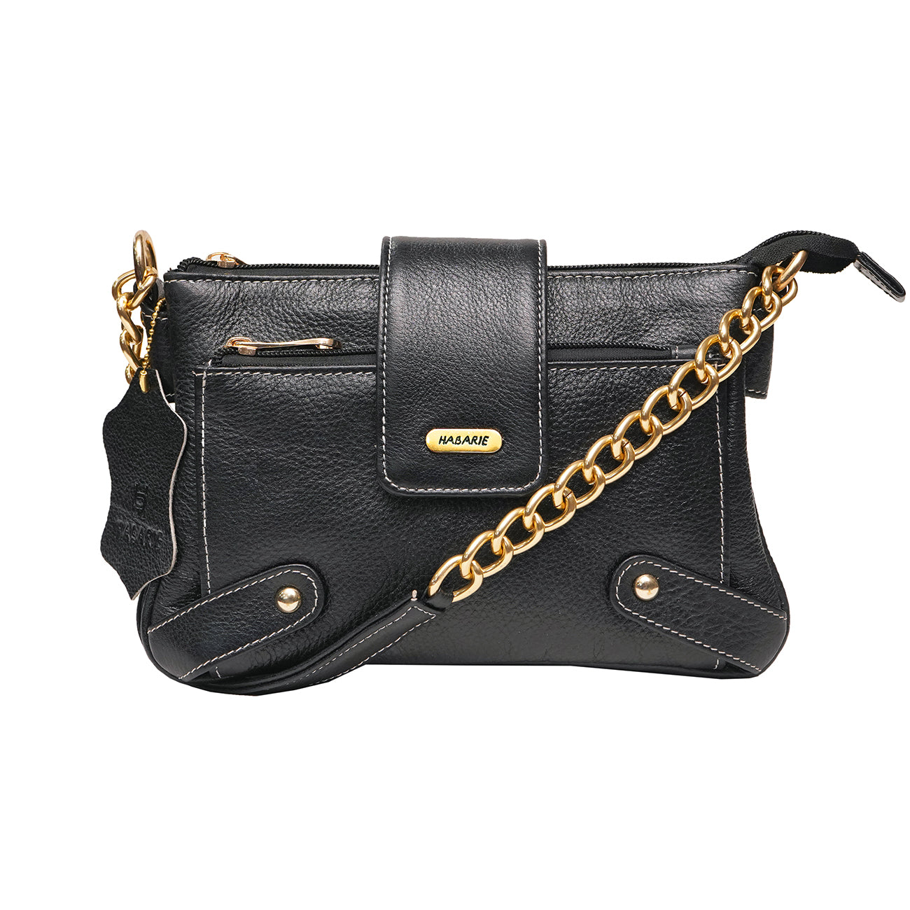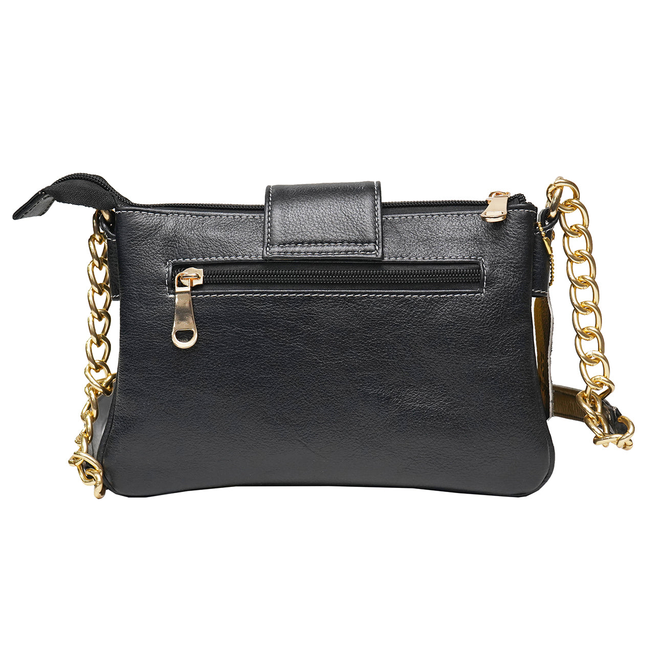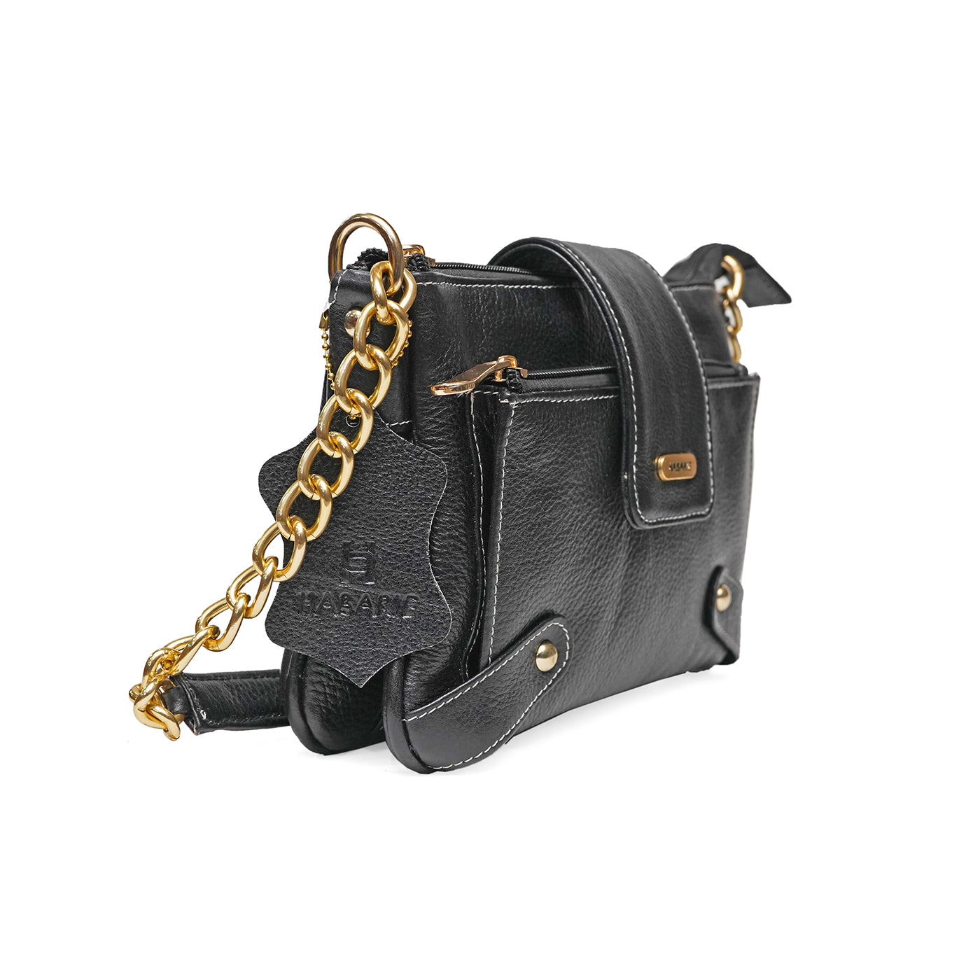 This trendy side bag consists of 2 spacious Inner compartment with a secret chain pocket and a slid pocket for your wallet, 1 front chain pocket 1 back chain pocket, 1 flap and a sling strap.