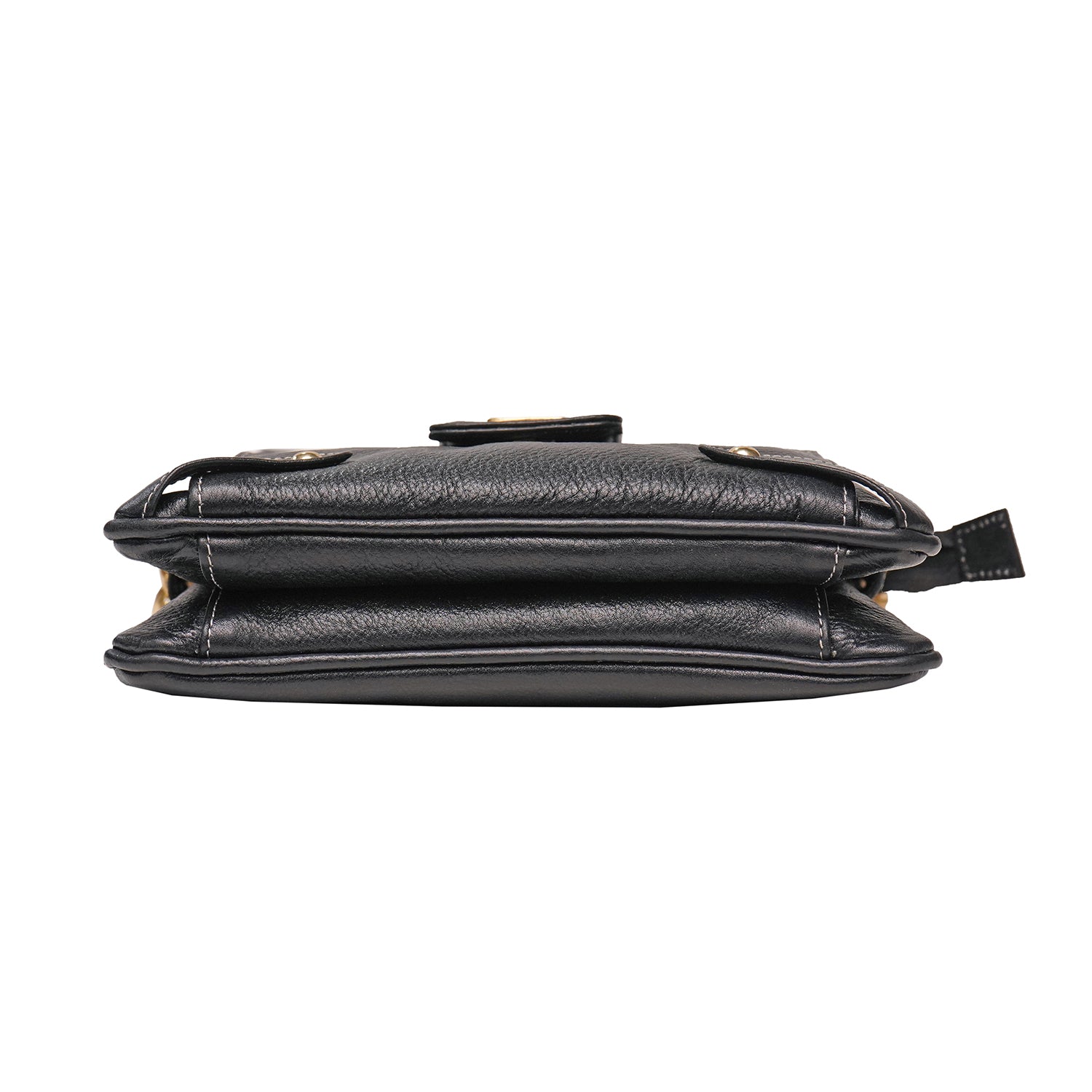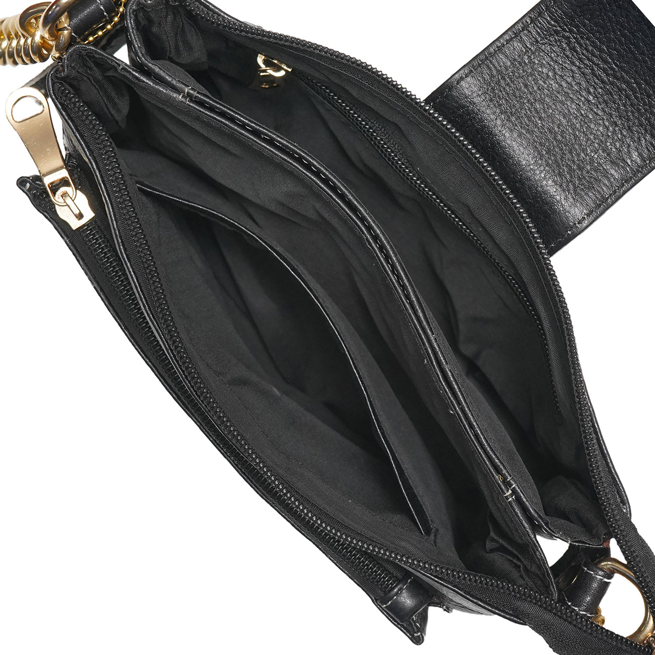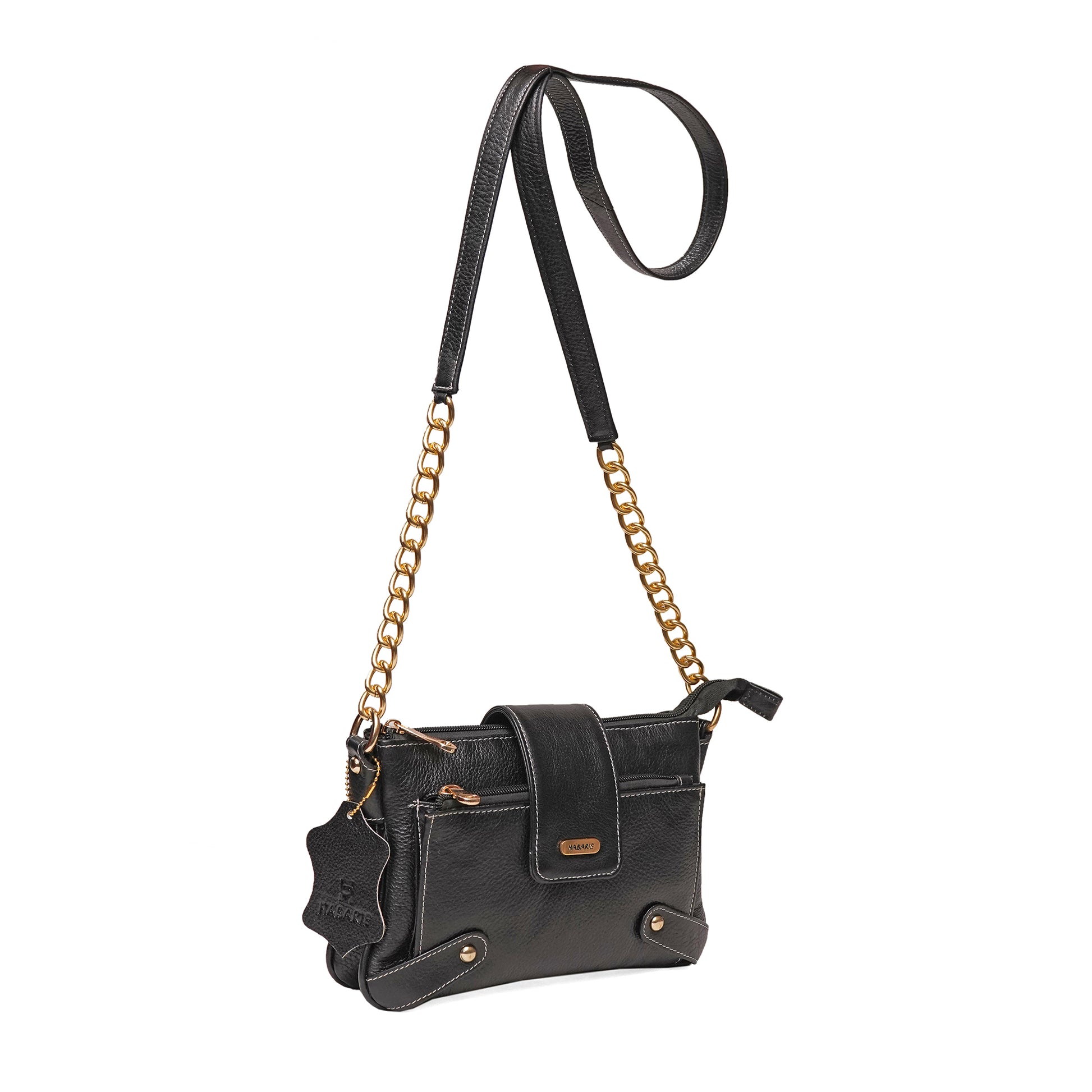 This trendy side bag consists of 2 spacious Inner compartment with a secret chain pocket and a slid pocket for your wallet, 1 front chain pocket 1 back chain pocket, 1 flap and a sling strap.