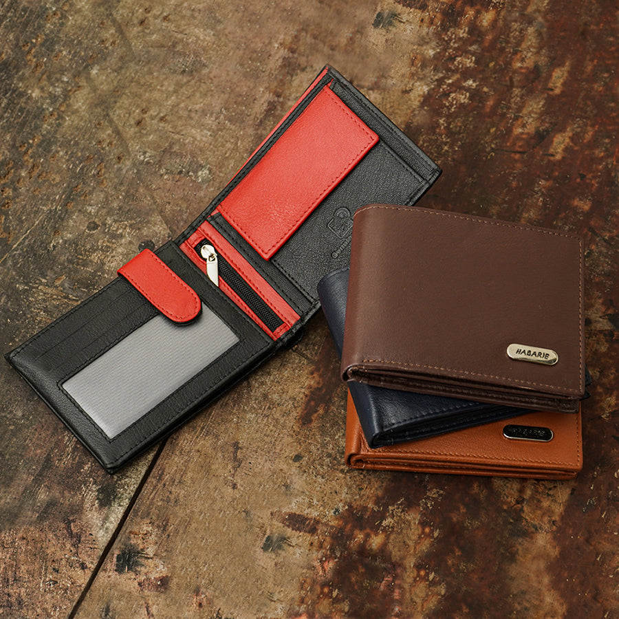 A classic Habarie’s men's bi-fold wallet which will never go out of style. Authentic and Classic. Made of 100% genuine leather.