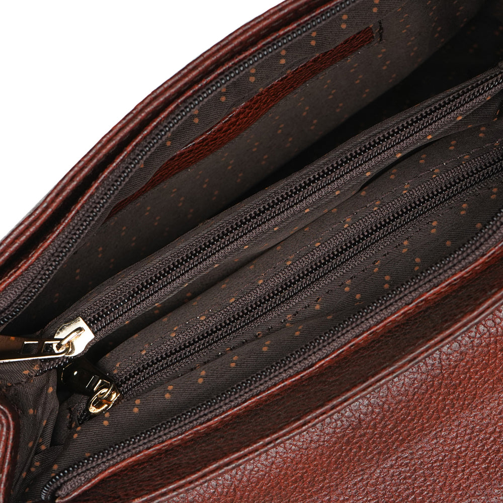 This trendy girly sling bag consists 2 Inner compartment, 1 outer chain pocket, 1 secret chain pocket, 1 slip pocket, 1 center chain pocket, 1 small handle and a sling strap.