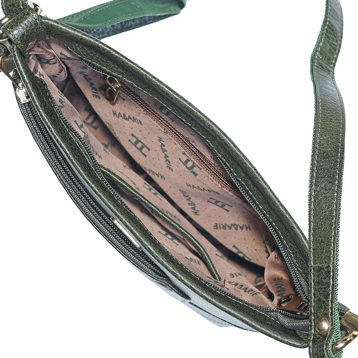 This Girly crossbody bag consists of 1 spacious Inner compartment with a secret chain pocket and a slid pocket for your wallet, 1 front chain pocket 1 back chain pocket and a sling strap.