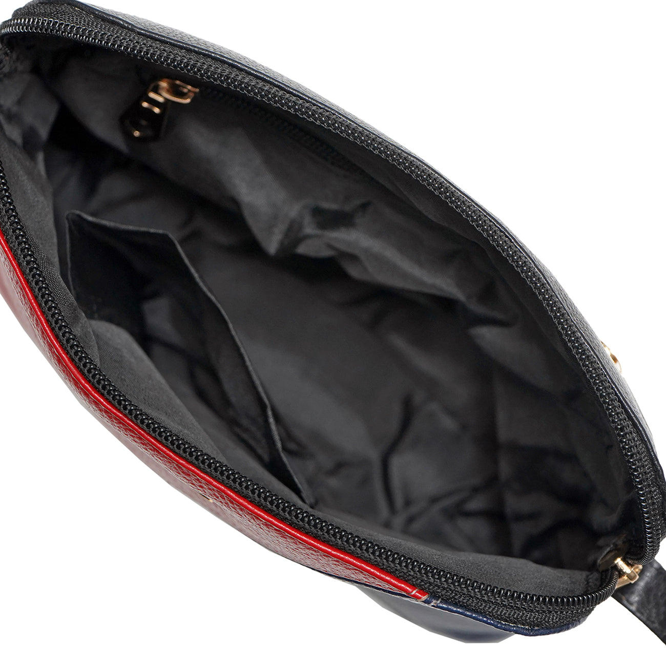 This Trendy side bag consists of 1 spacious Inner compartment with a secret chain pocket and a slid pocket for your wallet, 1 back chain pocket and a sling strap.
