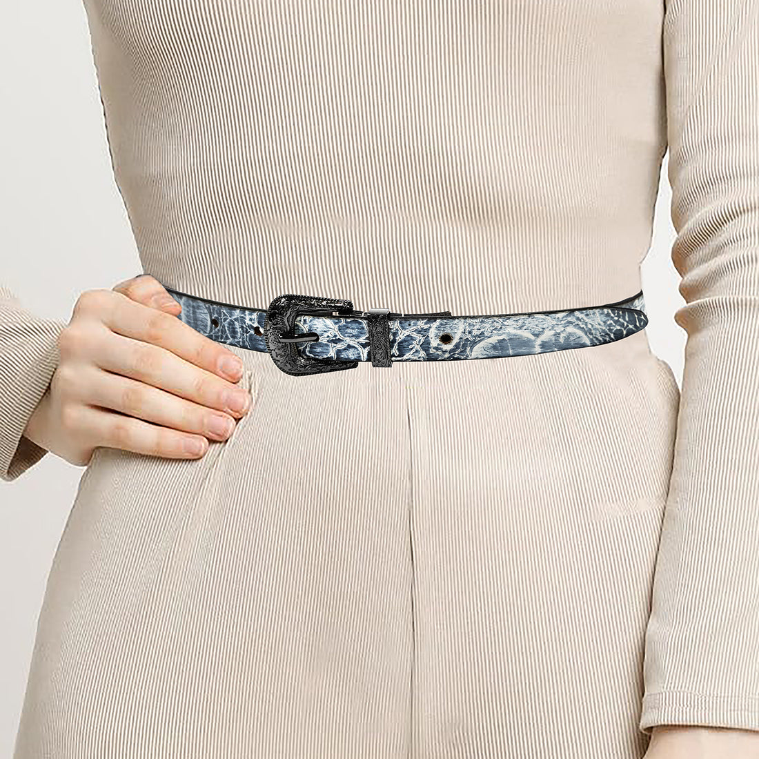 Trendy and Durable Fashion Belts for Women: Elevate your style with this fashionable women's leather belt, perfect for adding a touch of sophistication to any outfit with this stylish women's belt, featuring a unique P2C embossed design. This women's thin belt is lightweight enough that you will not feel any burden when wearing it. It is a gorgeous waist accessory belt to better shape your figure during this summer.